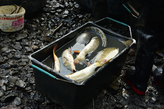 Jednalo se o více něž 10 metráků ryb a bylo to poměrně pestré složení: kapr, štika, candát, lín, amur … a především překvapivě velké množství bílé ryby, především plotic.